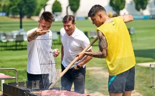 Inter sacó la parrilla y la puso sobre el césped del centro de entrenamientos, el Appiano Gentile. Así las cosas, cuerpo técnico y jugadores compartieron un distendido almuerzo tras la práctica matinal.