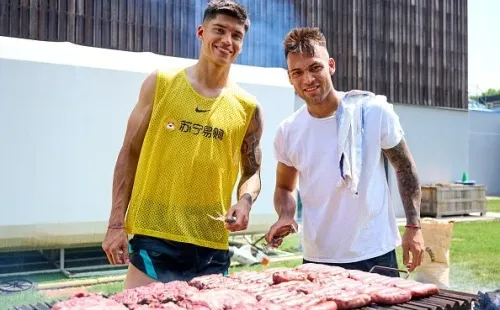 Y fueron los argentinos Lautaro Martínez y Joaquín Correa los que se apropiaron de la parrilla, encargados de condimentar, vigilar y dar vuelta la carne, además de mover el carbón y servir el plato de sus compañeros.