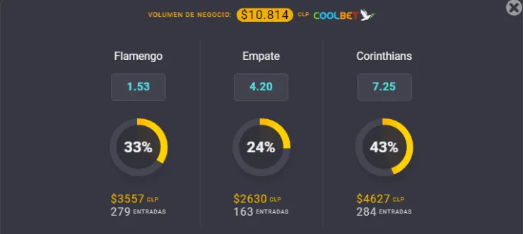 El OSO de Coolbet ya tiene listas las cuotas para este encuentro de la Copa Libertadores 2022, y dice que el favorito para el triunfo esta noche en la revancha es Flamengo, que paga 1,53 veces lo que juegues, sobre los 7,25 que paga Corinthians, y el empate paga 4,20 veces lo que apuestes.