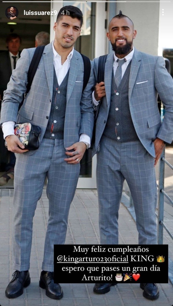 Por su parte, Luis Suárez no olvida la amistad forjada en el Barcelona y también saludo al chileno: “muy feliz cumpleaños King. Espero que pases un gran día, Arturito”.