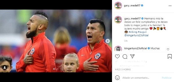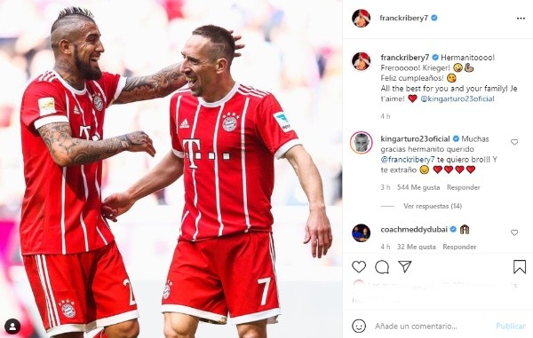 Por su parte, Gary Medel le mandó un cariñoso mensaje: “hermano mío, te deseo un feliz cumpleaños y te deseo todo lo mejor junto a tu familia. Te quiero mucho”. Franck Ribèry, el alemán socio del King en el Bayer Múnich incluso sacó su mejor español: “hermanito, feliz cumpleaños. All the best for you and your family. Te amo”.