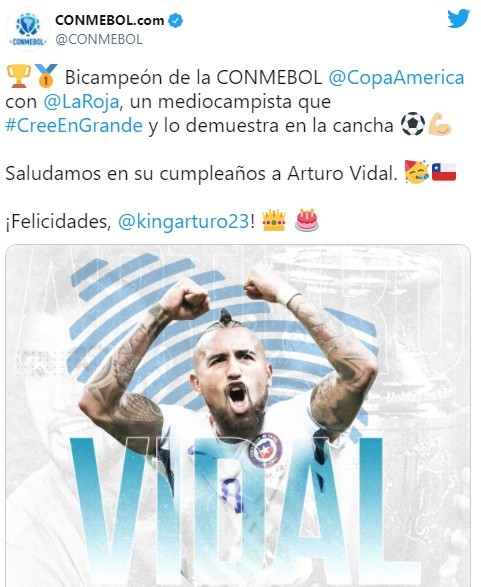 Este sábado 22 de mayo Arturo Vidal está de cumpleaños y el mediocampista chileno celebra 34 primaveras. El fútbol chileno e internacional celebra el nuevo natalicio de uno de los mejores jugadores nacionales en la historia y los saludos al King son de primer nivel.