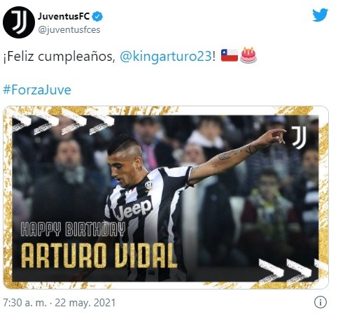 Uno de los primeros en saludar al Rey Arturo fue su club, el Inter de Milán: “felicidades, feliz cumpleaños”, escribió el equipo italiano en su cuenta oficial de Twitter.
