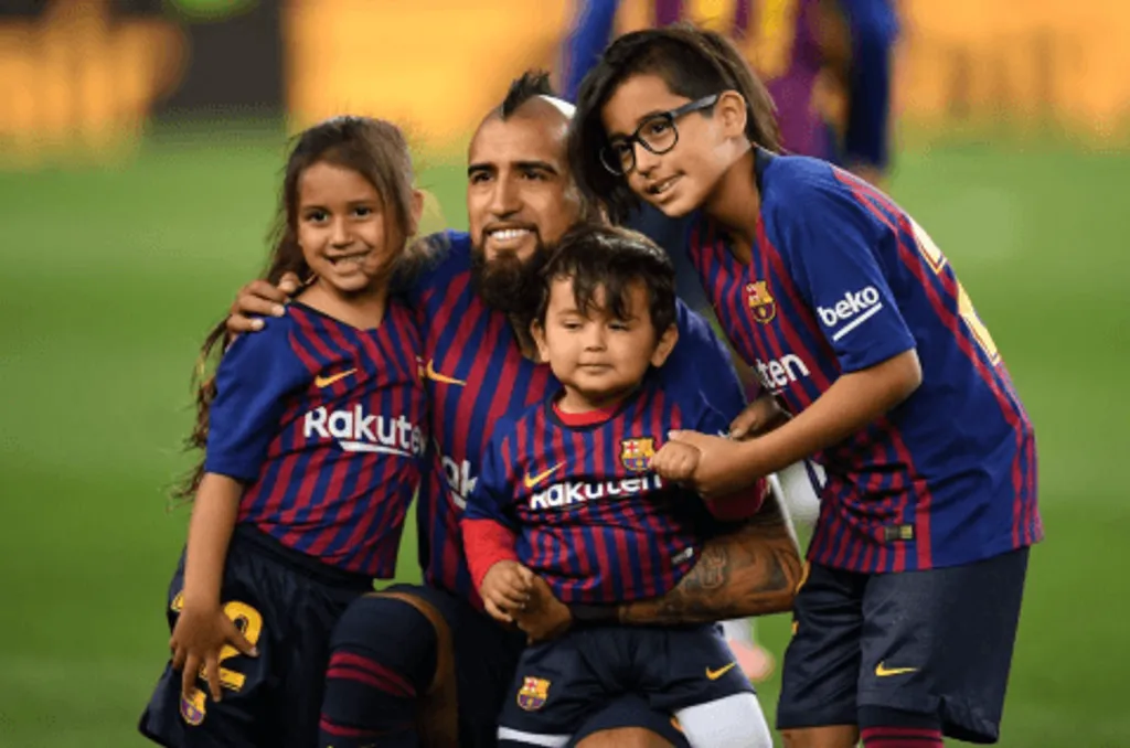 Arturo Vidal vivió un instante emocionante en la víspera del duelo que puede marcar suoctava liga consecutiva. El chileno saltó a la cancha contra el Levante acompañado por sus tres hijos: Alonso, Elizabetta y Emiliano.