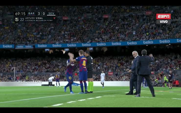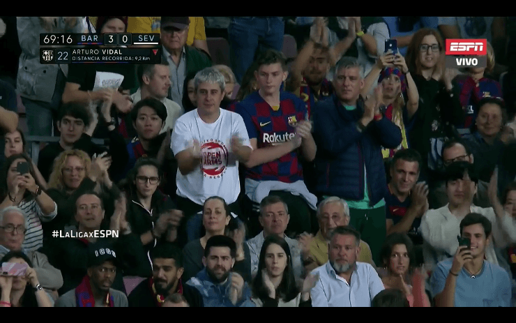 Arturo Vidal fue reemplazado por Iván Rakitic al minuto 70′ del partido ante el Sevilla y los hinchas del Barcelona lo llenaron de aplausos.