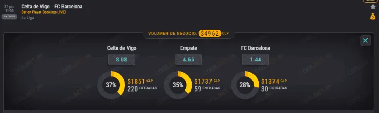 Por eso, el OSO de Coolbet se la juega por el cuadro de Arturo Vidal, y te cuenta que el favorito es, precisamente, el Barcelona que paga 1,45 veces lo que juegues, en desmedro de los 8,05 que paga el Celta de Vigo. En tanto, el empate paga 4,64 veces lo que apuestes.