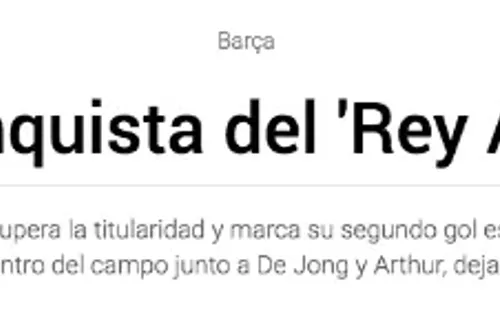 Por su parte, Sportlo catalogó de “Desatado” y le otorgó la mejor nota del equipo (8) junto a Luis Suárez y Marc-André ter Stegen: “El partido ante el Inter le dio alas y estuvo por todas partes. En defensa corrgió lagunas y en ataque apareció para marcar el segundo gol. Es un valor al alza que Valverde está aprovechando“.