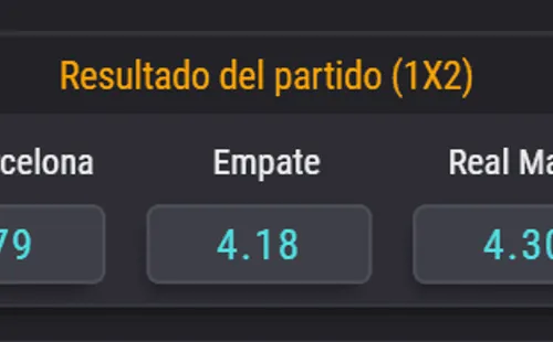 En Coolbet, el favorito para ganar el derbi español es el Barcelona, cuyo triunfo paga 1.79 veces lo que juegues. En tanto, el empate entre ambos paga 4.18 veces. Y si piensas que el triunfo será del Real Madrid, paga 4.30 veces lo apostado.