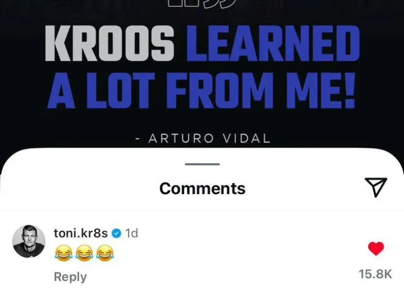 En viral comentario con emojis riéndose de Arturo Vidal, con más de 15 mil “me gusta”, Kroos volvió a dar que hablar tras una brillante carrera que tuvo sus inicios junto al King en Leverkusen.