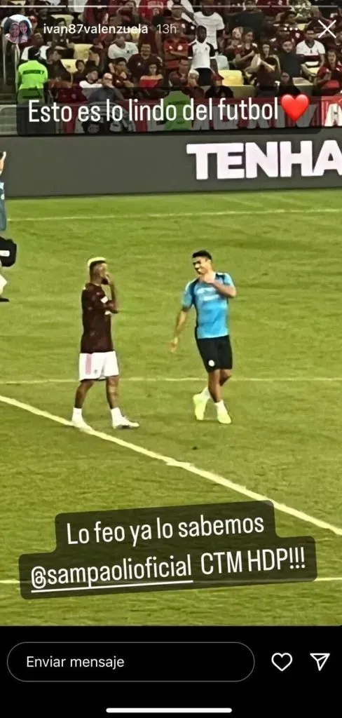 Y le tiró un dardo gigante al DT del Fla. “Lo feo ya lo sabemos. Sampaoli CTM HDP”, decía también la publicación del otrora cadete colocolino, siempre muy cerca de Arturo Vidal y su círculo más íntimo. ¿Estará rota la relación sin posibilidad de recomponerse? Al menos el seleccionado chileno dejó margen de tiempo, pues reveló que pretende cumplir el contrato en el club más popular del mundo.