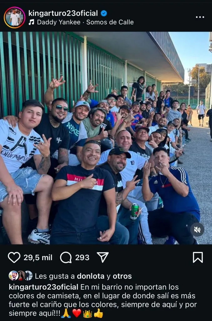 Arturo Vidal sorprende en sus redes sociales con una foto donde se ve rodeado de gente con distintas camisetas, donde se pueden ver hinchas de Colo Colo y Universidad de Chile.
