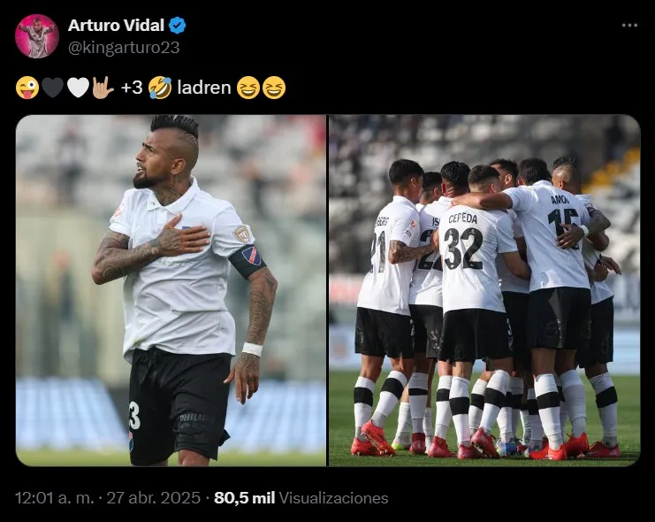 Vidal es cercano a las redes sociales y si bien tras el triunfo celebró en su cuenta de Instagram con un mensaje ‘tranquilo’ y que decía “excelente triunfo equipo!!! +3, seguimos hermano” junto a una foto de él acompañado de Mauricio Isla, a la medianoche del mismo día apareció su lado más polémico y en su cuenta de X (@kingarturo23) publicó un mensaje más corto, pero más contundente que dice “+3, ladren” junto a emojis en color blanco y negro, risas, entre otros.