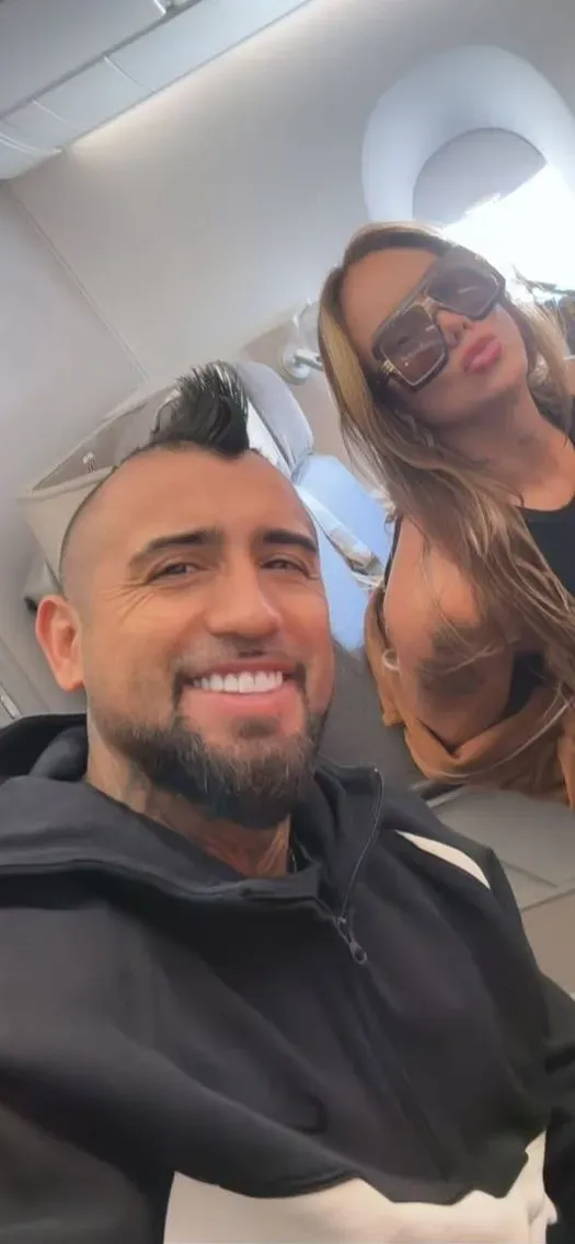 En esta ocasión, Arturo Vidal subió, primero, fotos en el aeropuerto, junto con su pareja, la colombiana Sonia Isaza. Luego, el colocolino subió una imagen arriba de un avión.