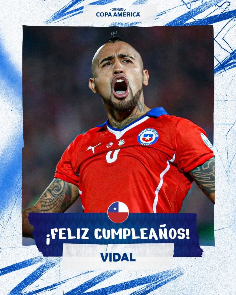 Mediante sus redes sociales, Conmebol hizo paso de las críticas a Arturo Vidal y lo reconoció por sus importantes logros con la selección chilena. Esto, como saludo por su cumpleaños número 38.