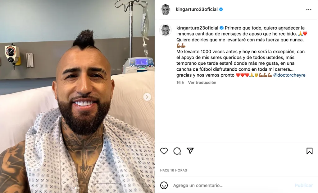 Arturo Vidal fue operado la tarde de este miércoles y su recuperación dependerá de los avances. No obstante, se espera que le tome por lo menos dos a tres meses el poder regresar.