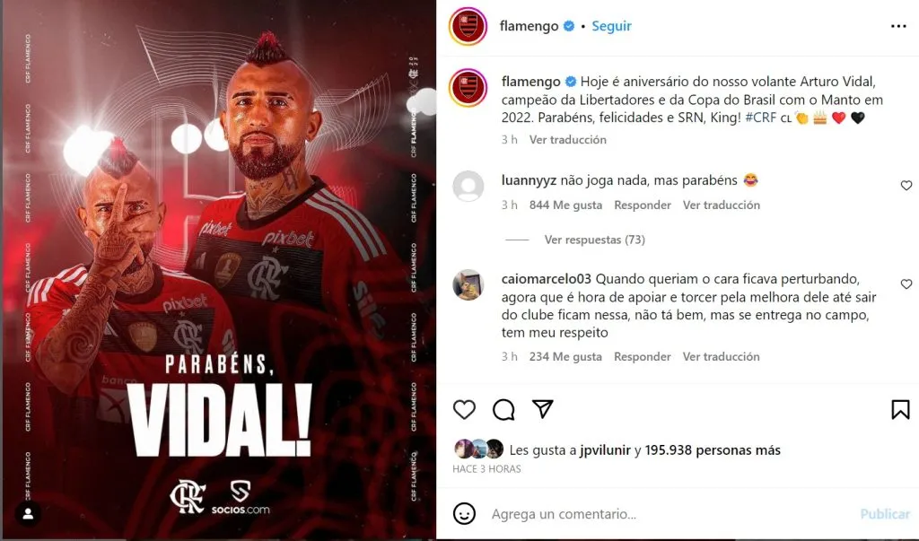 De hecho, la situación es tan insalvable que ni este 22 de mayo, día del cumpleaños 36 del King, se salvó de los insultos por parte de la siempre tolerante fanaticada de redes sociales. Y es que el Flamengo subió un saludo cumpleañero para el volante, que rápidamente se llenó de burlas hacia su nivel.