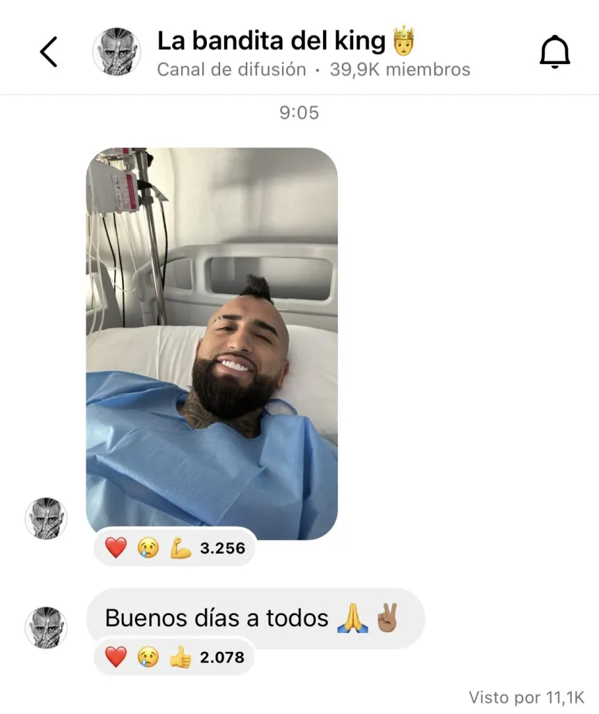 Vidal, sin embargo, se mantiene optimista como siempre. En su canal de difusión de Instagram compartió la primera imagen desde la hospitalización para todos sus seguidores, con quienes está viviendo la previa de la cirugía. El bicampeón de América no pierde la sonrisa.